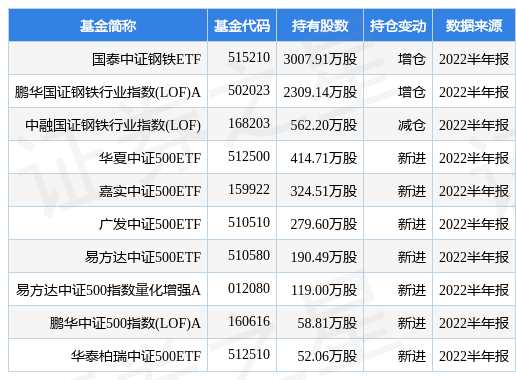 其中持有数量最多的基金为国泰中证钢铁ETF,目前规模为19.78亿元,最新净值1.4494(8月29日),较上一交易日上涨0.88%,近一年下跌25.67%。该基金现任基金经理为徐成城。
