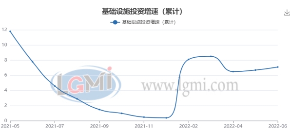基础设施建设:1-6月基础设施投资(不含电力、热力、燃气及水生产和供应业)同比增长7.1%。其中,水利管理业投资增长12.7%,公共设施管理业投资增长10.9%,道路运输业投资下降0.2%,铁路运输业投资下降4.4%。